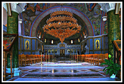 λιτανείες συνοδεία πολλών λαμπροφορεμένων Δεσποτάδων και τά φωταγωγημένα